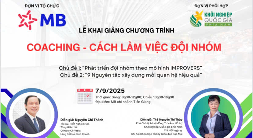 Ngày 07/9/2025, Ngân hàng Quân đội MB – Chi nhánh Tiền Giang tổ chức chương trình “Coaching & Kỹ năng làm việc đội nhóm” dành